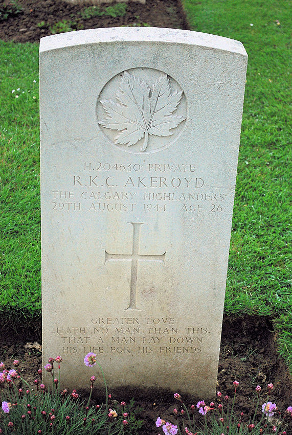 This cemetery lies on the west side of the main road from Caen to Falaise (route N158) and just north of the village of Cintheaux. Bretteville-sur-Laize is a village and commune in the department of the Calvados, some 16 kilometres south of Caen. The village of Bretteville lies 3 kilometres south-west of the Cemetery. Buried here are those who died during the later stages of the battle of Normandy, the capture of Caen and the thrust southwards (led initially by the 4th Canadian and 1st Polish Armoured Divisions), to close the Falaise Gap, and thus seal off the German divisions fighting desperately to escape being trapped west of the Seine. Almost every unit of Canadian 2nd Corps is represented in the Cemetery. There are about 3,000 allied forces casualties of the Second World War commemorated in this site.