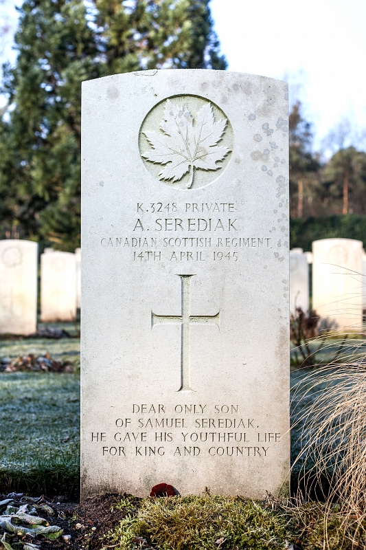 Historical Information: The Netherlands fell to the Germans in May 1940 and was not re-entered by Allied forces until September 1944. The great majority of those buried in Holten Canadian War Cemetery died during the last stages of the war in Holland, during the advance of the Canadian 2nd Corps into northern Germany, and across the Ems in April and the first days of May 1945. After the end of hostilities the remains of over 1,300 Canadian soldiers were brought together into this cemetery.