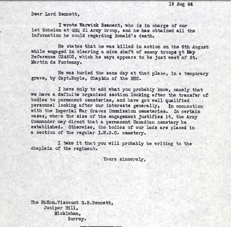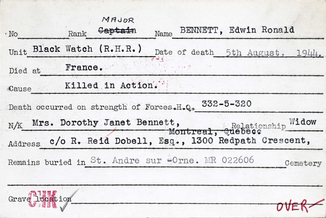Brother of Lieutenant Henry Harrison Bennett, who died while serving with the Cameron Highlanders of Ottawa.