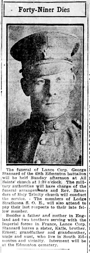 Son of Ernest George William and Elizabeth Sarah Stannard, of Felthorpe, Norwich, England.