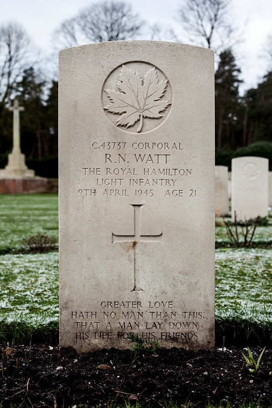 Historical Information: The Netherlands fell to the Germans in May 1940 and was not re-entered by Allied forces until September 1944. The great majority of those buried in Holten Canadian War Cemetery died during the last stages of the war in Holland, during the advance of the Canadian 2nd Corps into northern Germany, and across the Ems in April and the first days of May 1945. After the end of hostilities the remains of over 1,300 Canadian soldiers were brought together into this cemetery.