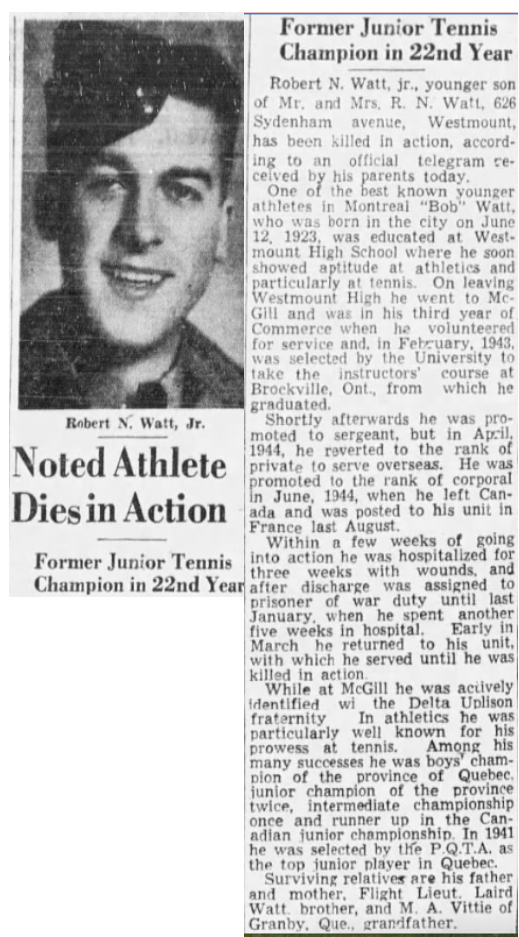 Son of Robert Noble Watt and Marguerita Veitch Watt, of Westmount, Province of Quebec.