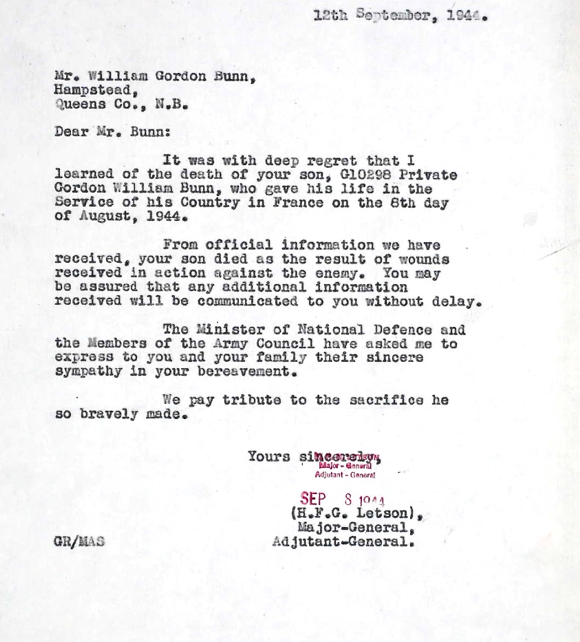 Son of William Gordon Bunn, and of Alice Mable Bunn, of Hampstead, Queen's Co., New Brunswick.