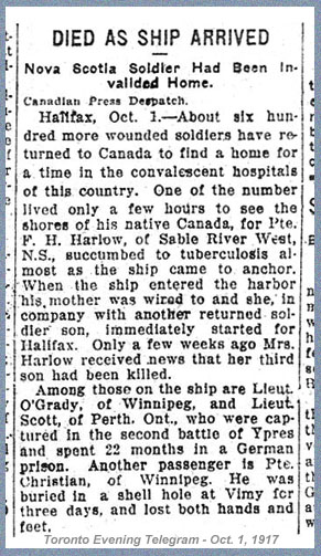 Son of James and Hannah Harlow, of Sable River, N.S.