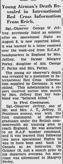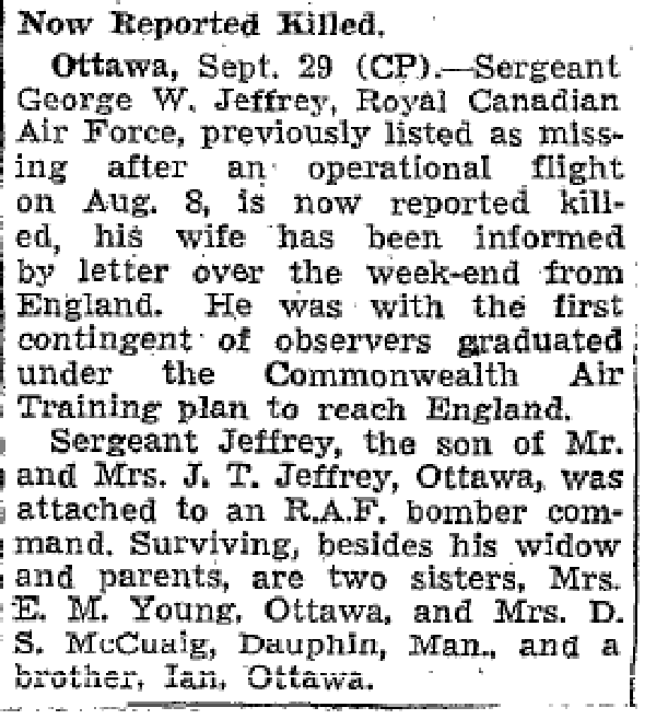 Son of James Thompson Jeffrey and Mary Maliue Jeffrey; husband of Margery Alice Jeffrey, of Ottawa, Ontario.