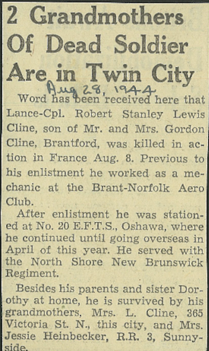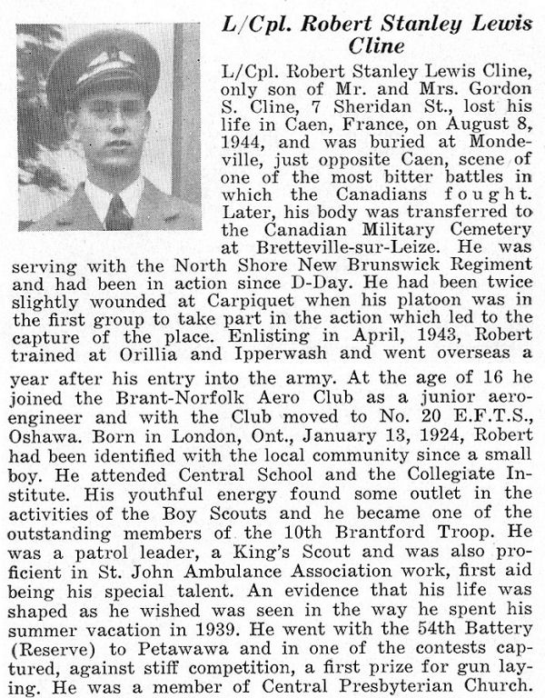 Son of Gordon Stanley Cline and Isabel M. Cline, of Brantford, Ontario.