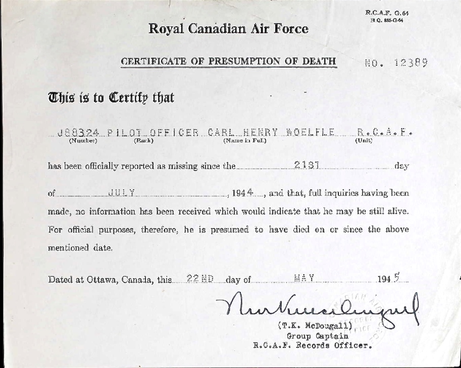Digital gallery of Pilot Officer Carlton Henry Woelfle