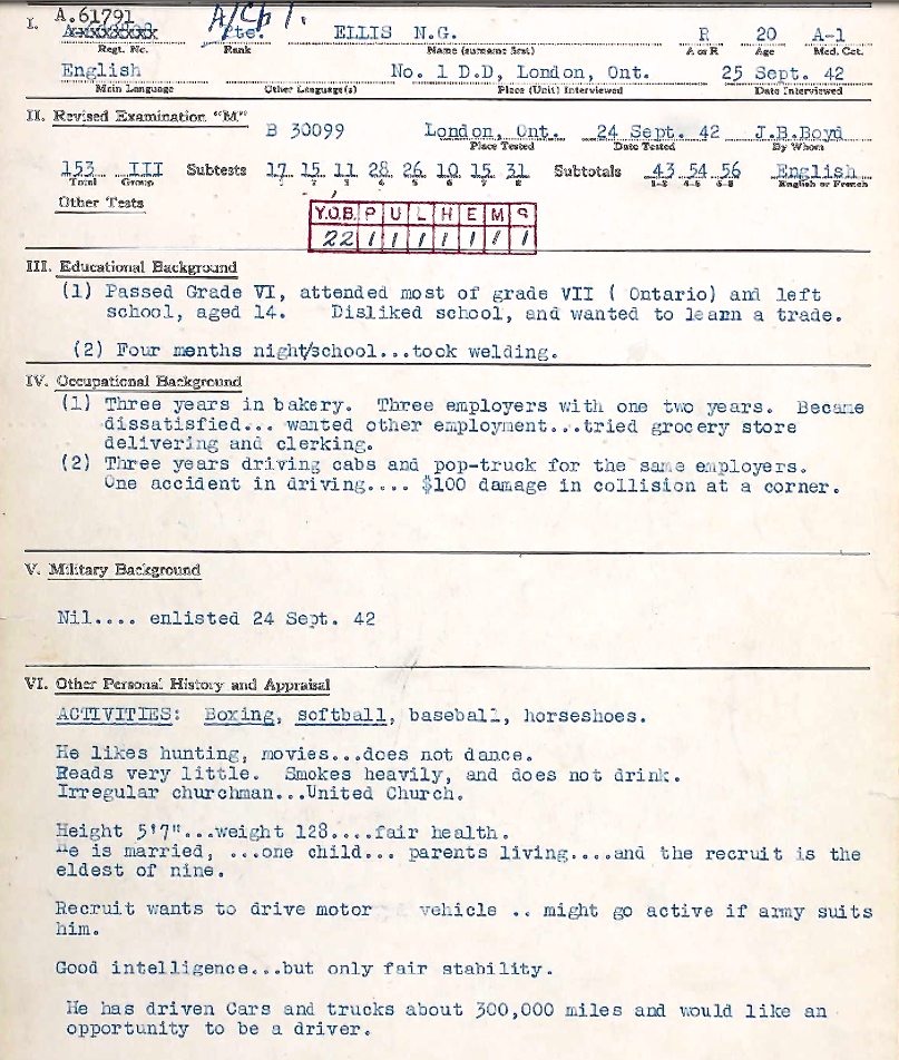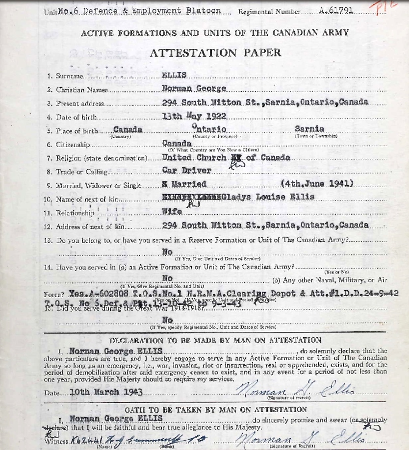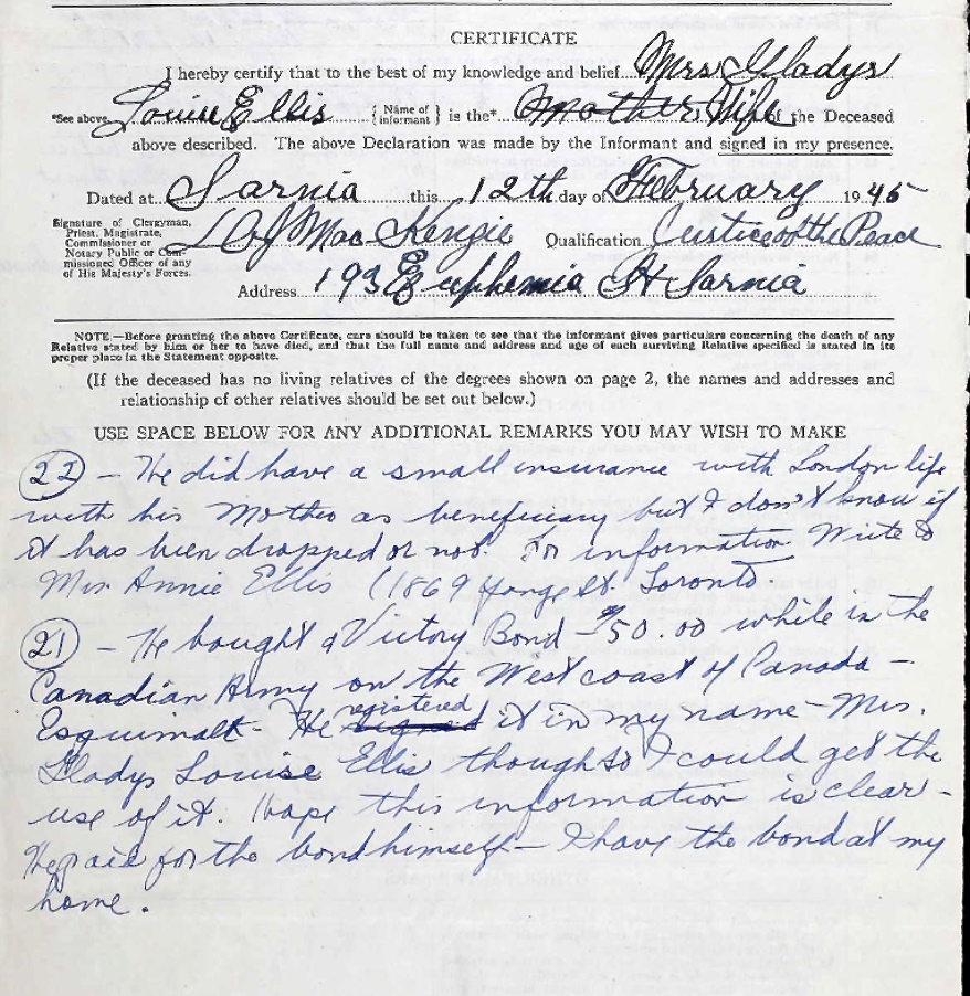 Son of Herman and Annie Ellis, of Sarnia, Ontario; husband of Gladys Louise Ellis, of Sarnia.