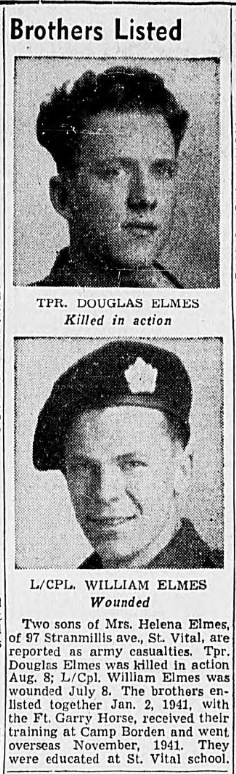 Son of William Thomas Elmes and Helen Elmes, of St. Vital, Manitoba.