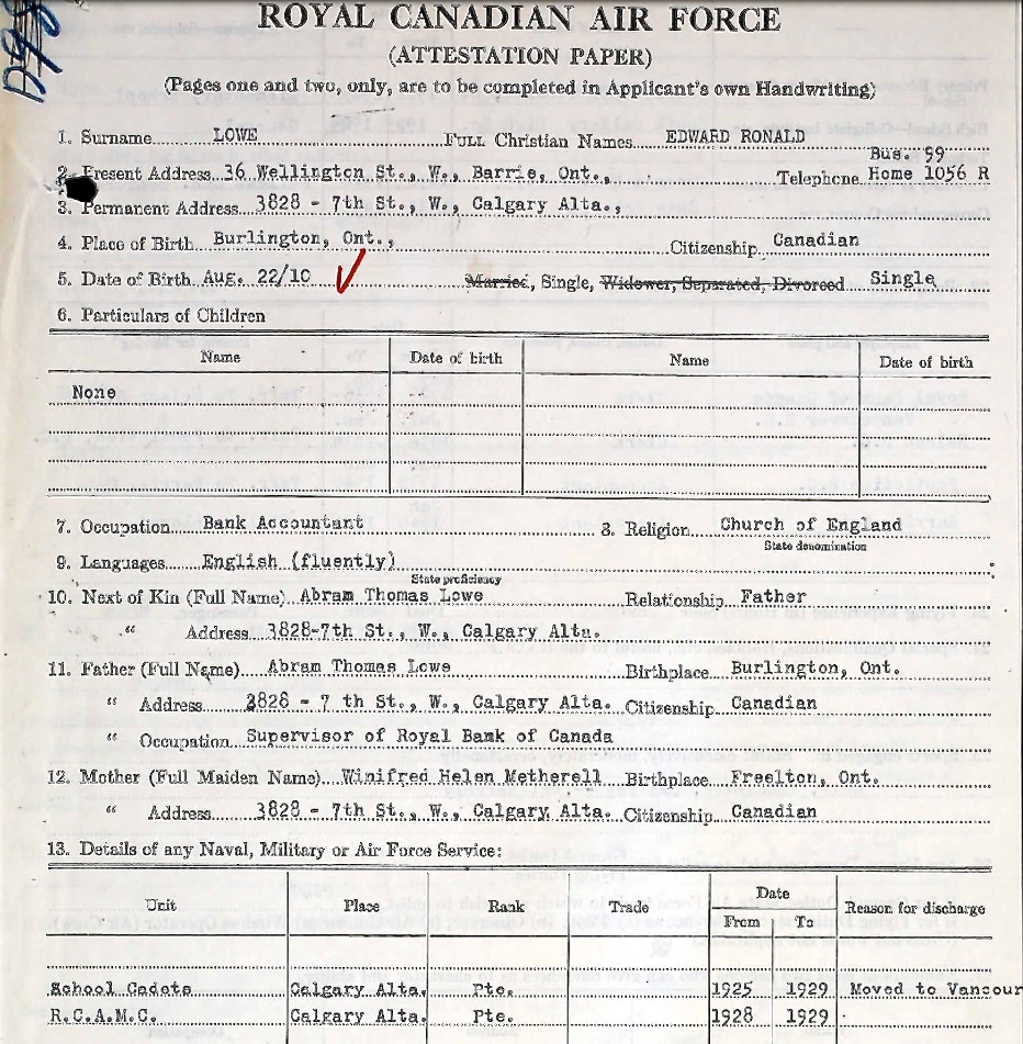 Son of Abram Thomas Lowe and Helen Winifred Lowe, of Vancouver, British Columbia, Canada.
