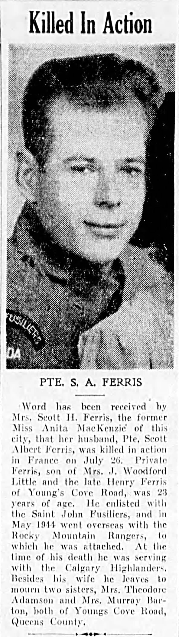 Son of Henry and Annie Ferris; husband of Anita Hulme Ferris, of Saint John, New Brunswick.
