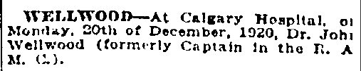 Son of William and Christina Wellwood, of Wingham, Ontario; Husband of Elleda Pirley Wellwood, of 12011, 122nd St., Edmonton, Alberta.