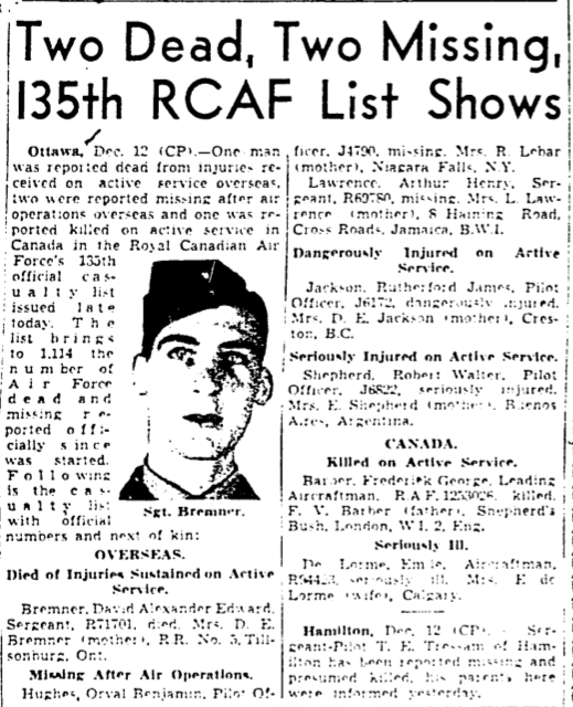 Page 35 of the Second World War Book of Remembrance.