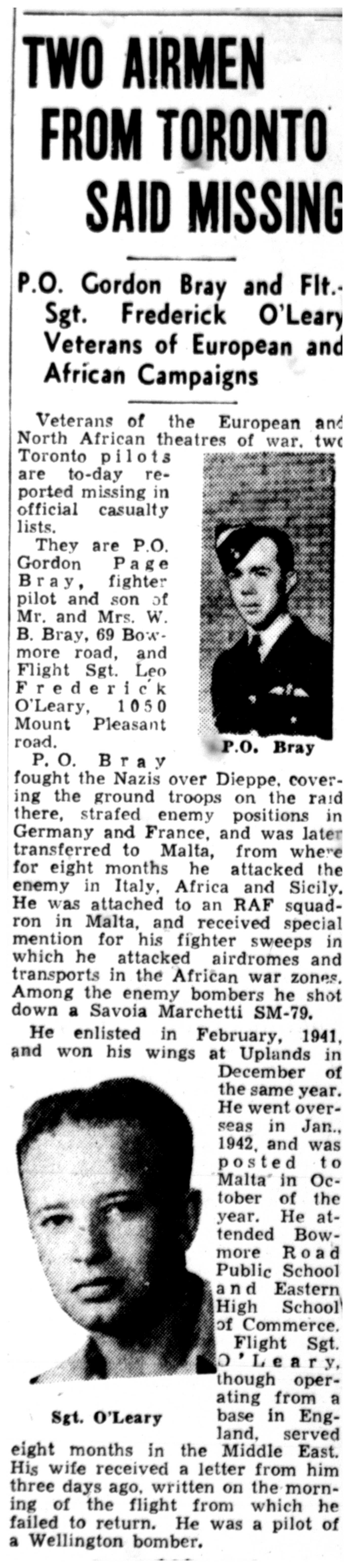 Enlistment: March 3, 1941 Ontario