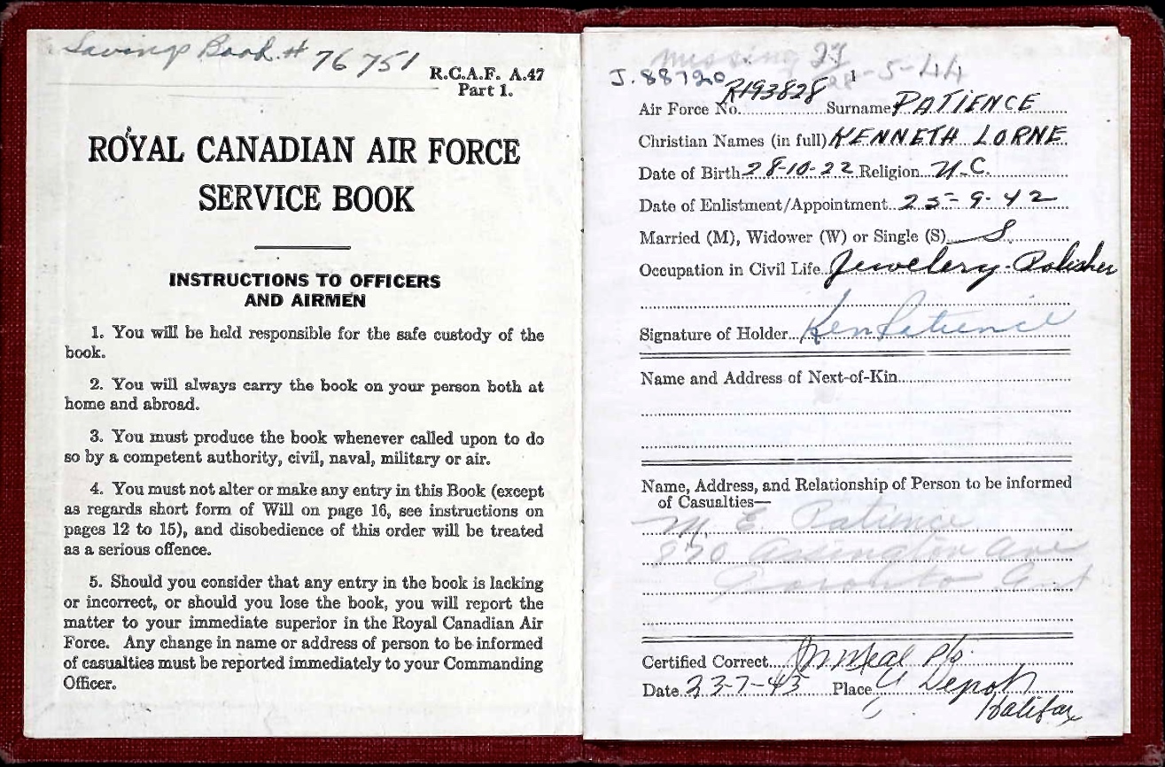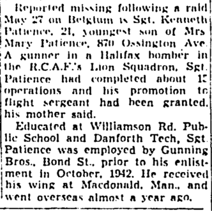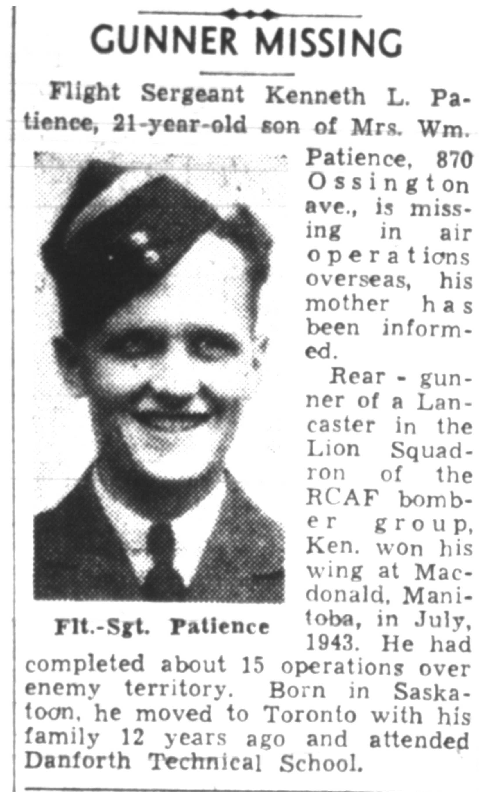 Son of William Uriah Patience, and of Mary Emma Patience, of Toronto, Ontario, Canada.