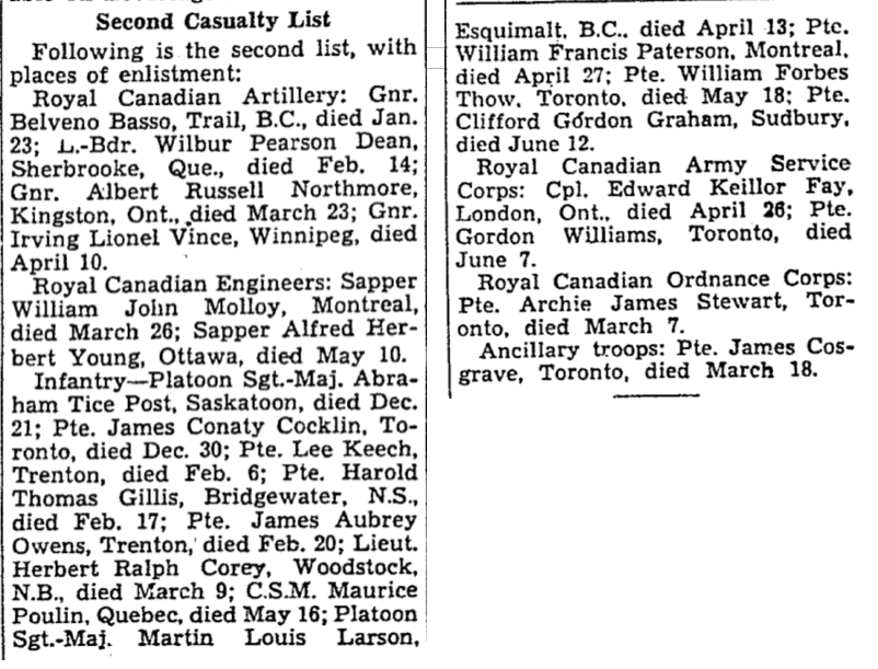 Page 8 of the Second World War Book of Remembrance.