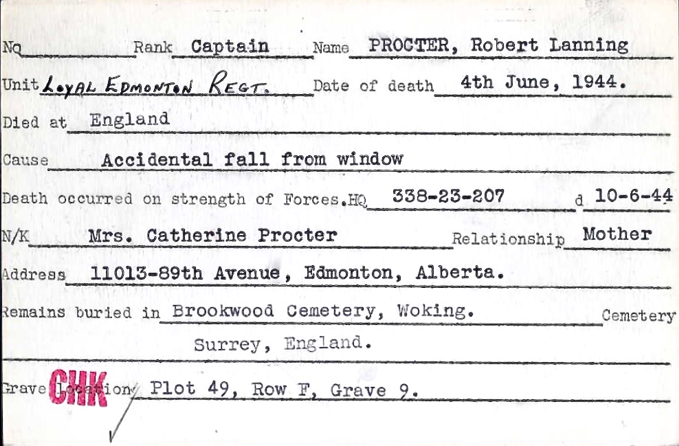 Brother of Squadron Leader Richard Campbell Procter, who died while serving with the Royal Canadian Air Force.