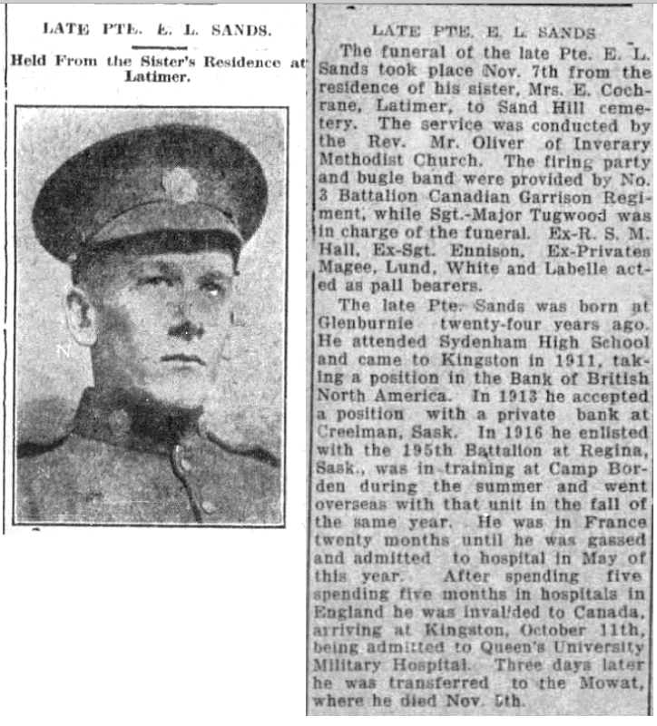Son of Mrs. Emma Sands, of 16C, Nelson St., Kingston, Ont.