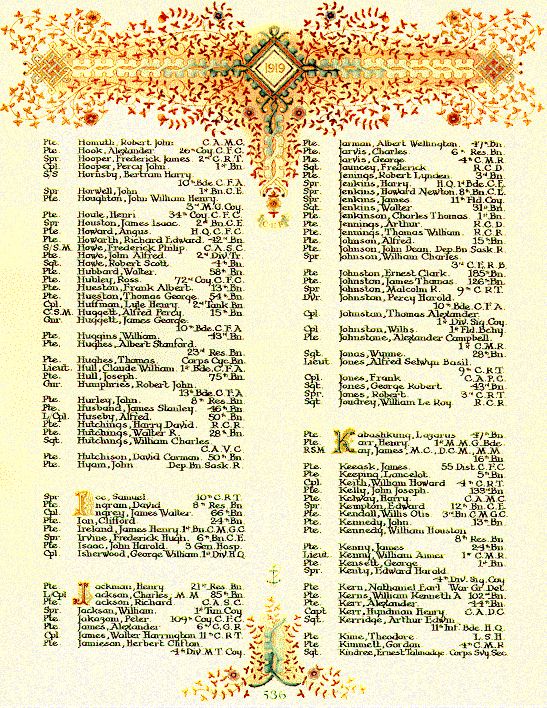 Page 536 of the First World War Book of Remembrance.