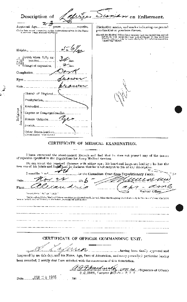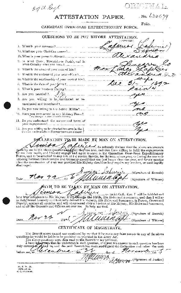 Son of Oliver and Maria Laferriere, of Montreal. Husband of Lucy Laferriere of Alexandria, Ont. Served in France with Eastern Ontario Regt.
