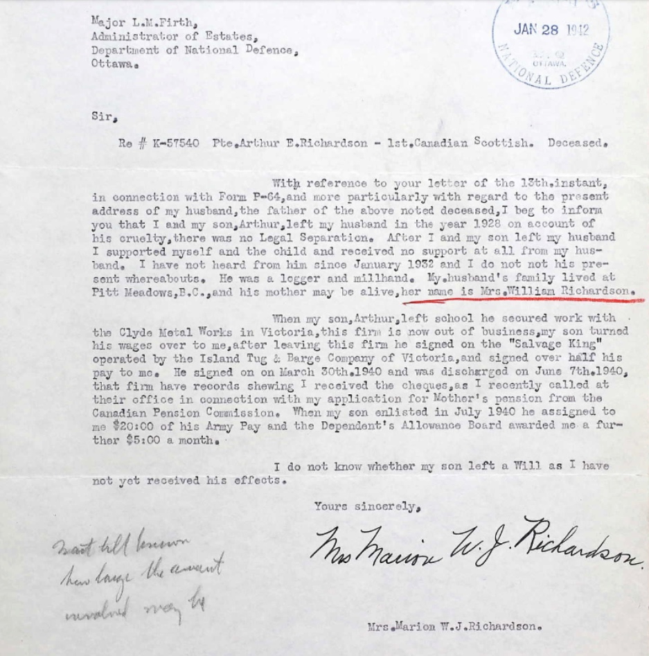 Son of H. J. Richardson and Marion Richardson, of Victoria, British Columbia.
