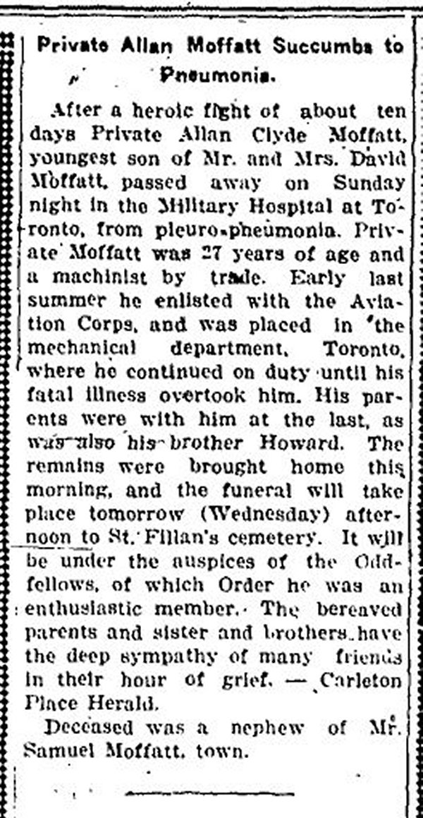 Son of David and Mary Euphemia (nee Somerville) Moffatt, of Carleton Place, Ontario.