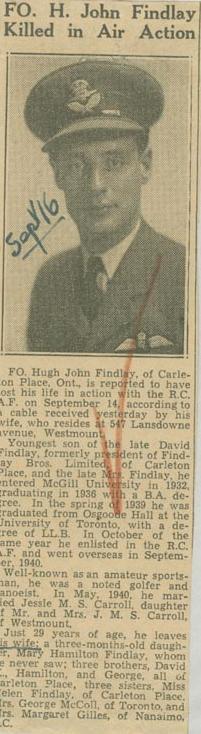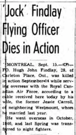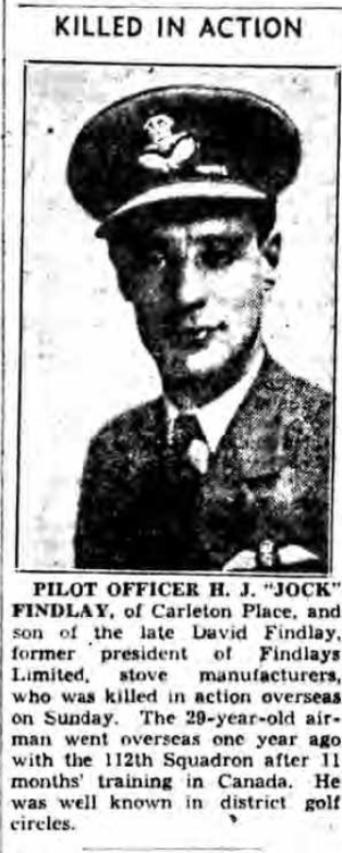 The Town of Carleton Place remembered Flying Officer Findlay by naming a street in his honour.