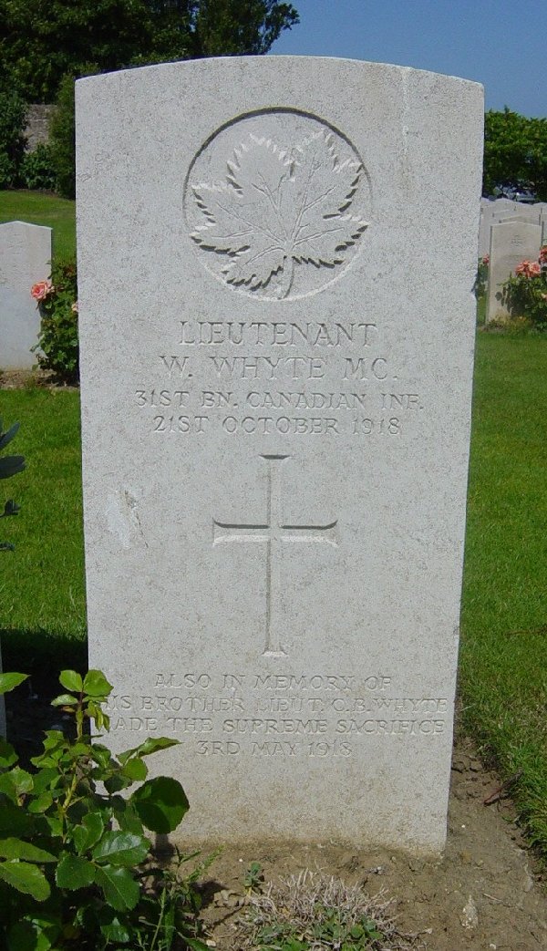 Brother of Second Lieutenant Cecil Whyte who died on May 3, 1918, while serving with the Royal Air Force.
