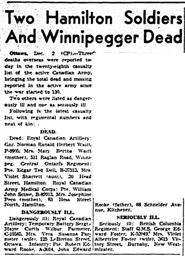 Unit/Regiment: Royal Canadian Army Medical Corps