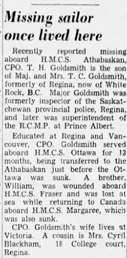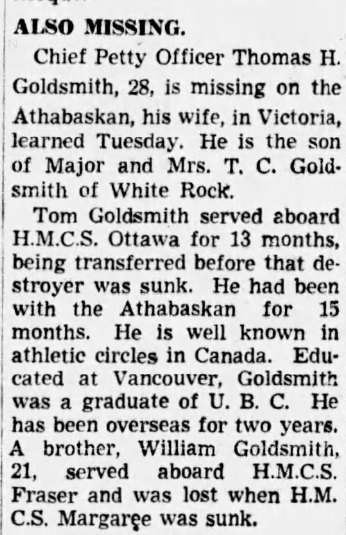 Son of Thomas Charles and Lillian Hardy Goldsmith; husband of Amy Pauline Goldsmith, of Victoria, British Columbia.