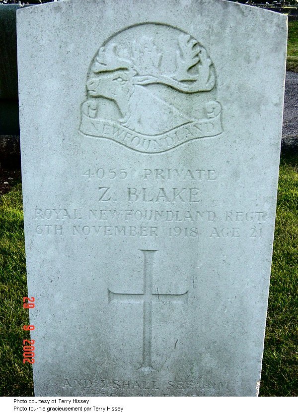 Son of John and Jane Blake, of Barrs Islands, Fogo District, Newfoundland. He was recruited on 30 December 1917 stating he was single and a labourer.