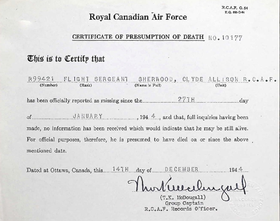 Digital gallery of Flight Sergeant Clyde Allison Sherwood