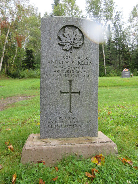 Son of Bedford and Mary (nee Goodine) Kelly, of Prince William, New Brunswick. Brother of James, Leonard, Chesley, Auldon, Rainsford, Harry, Cecil, Glenwood, Muriel, Vera, Letha, Nellie, Mrs. Clarence Jordon and Mrs. Jack Lyons. Husband of Edith Margaret (nee MacRae) Kelly and father of Michael and Philip of Prince William, New Brunswick.