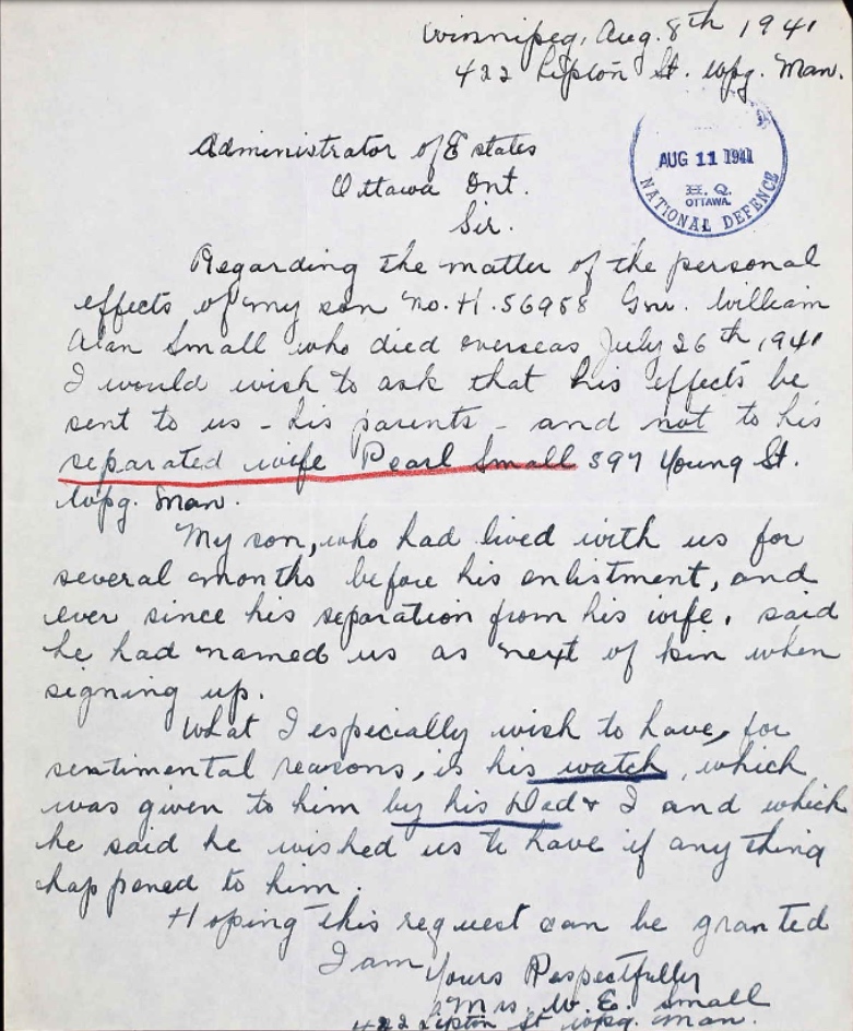Son of William Edward and Ethel Small, of Winnipeg, Manitoba, Canada; husband of Pearl Small, of Winnipeg.