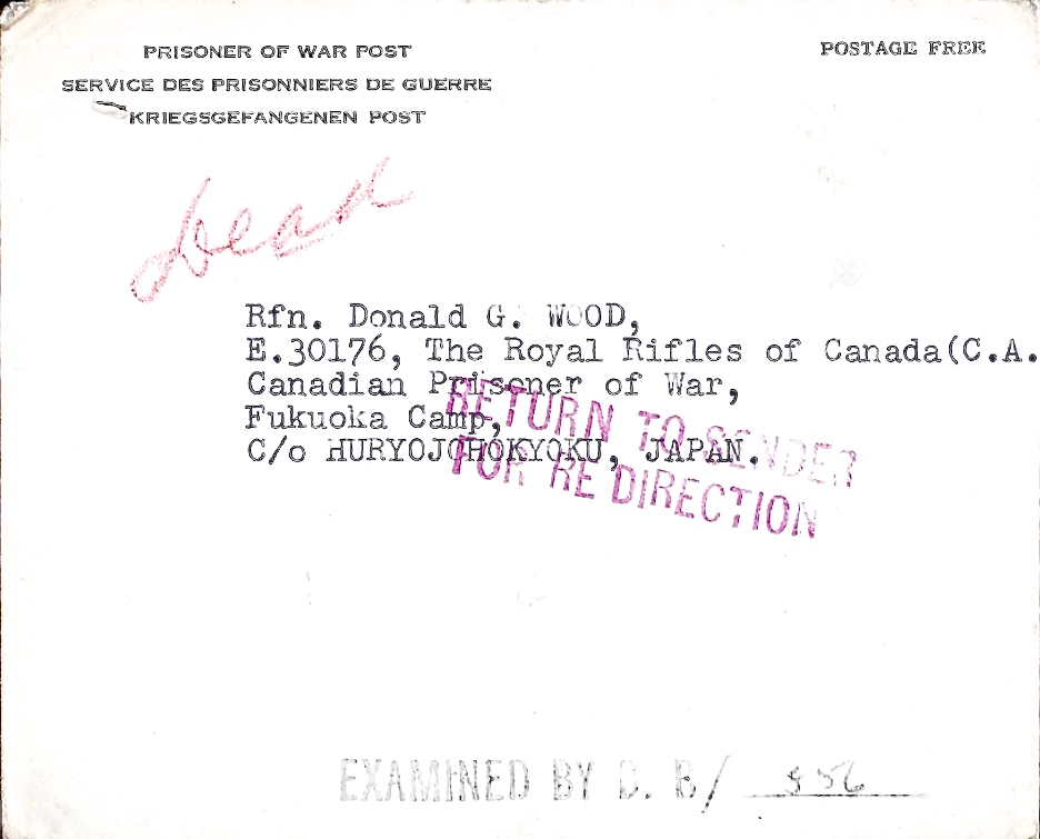 Donald Gordon stated being born in 1921 when he enlisted. He served in Québec, in Newfoundland with Force W, in Hong Kong with Force C and in Japan as prisoner of war. He had 1,136 days of service, including 56 overseas.