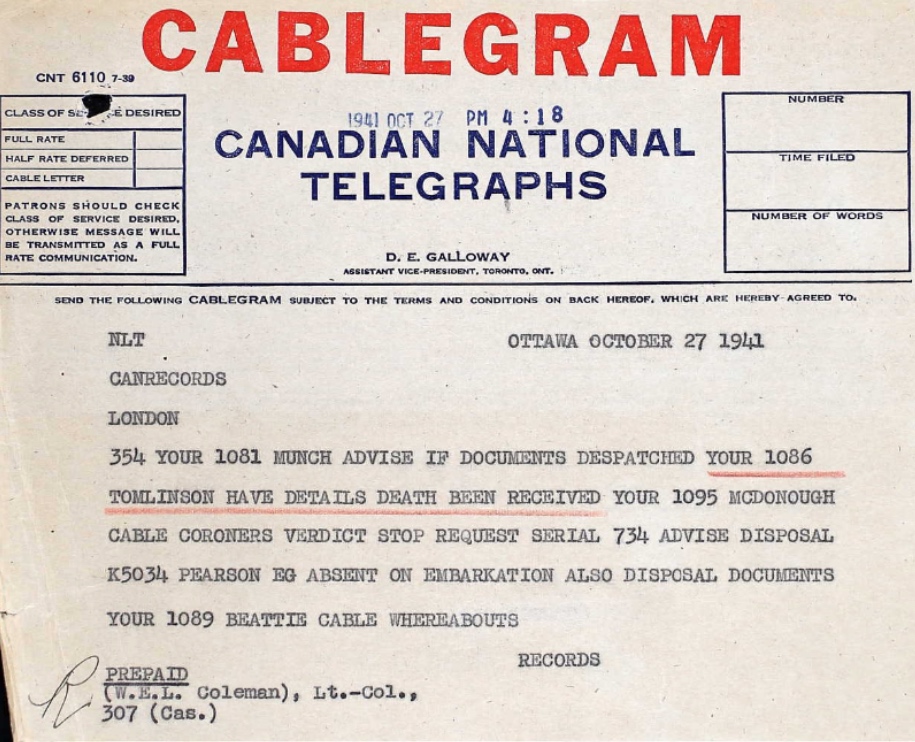 Page 46 of the Second World War Book of Remembrance.