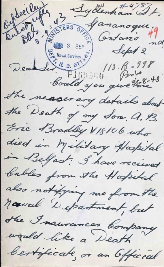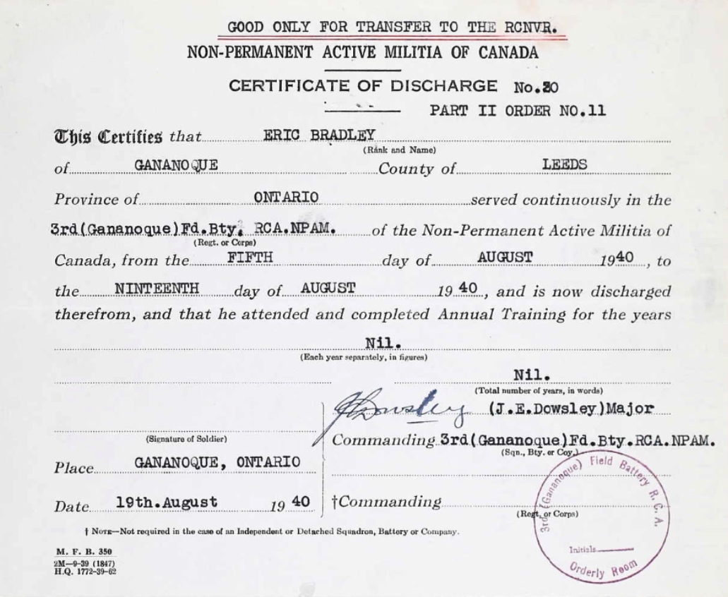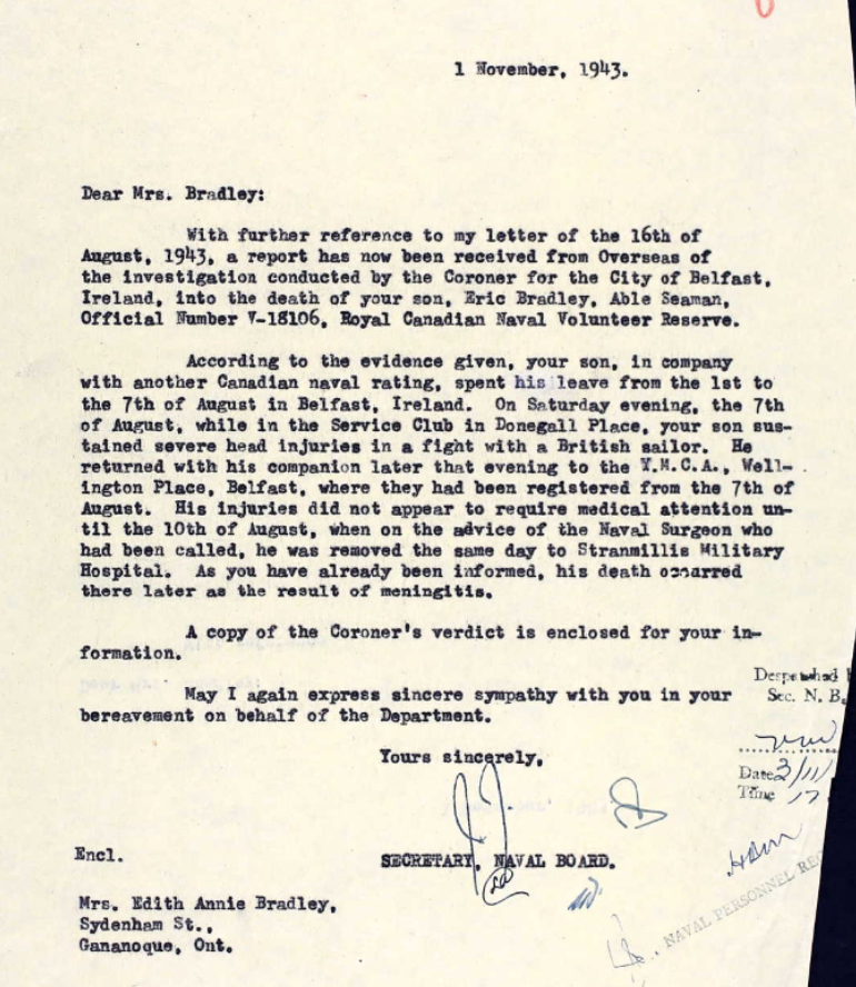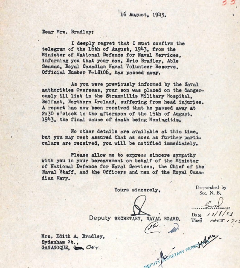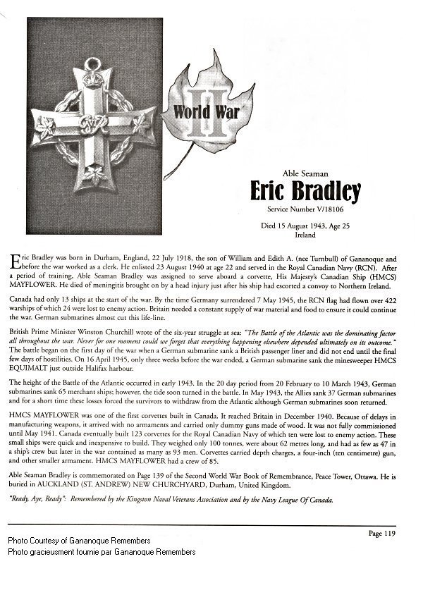 Son of William and Edith A. Bradley, of Gananoque, Ontario.