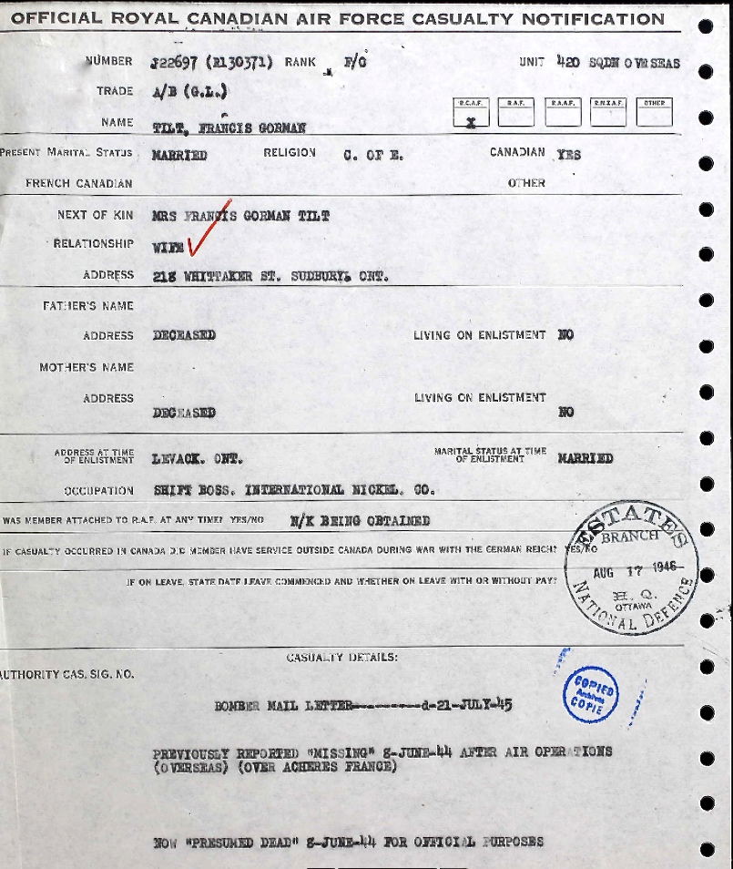 Digital gallery of Flying Officer Francis Gorman Tilt
