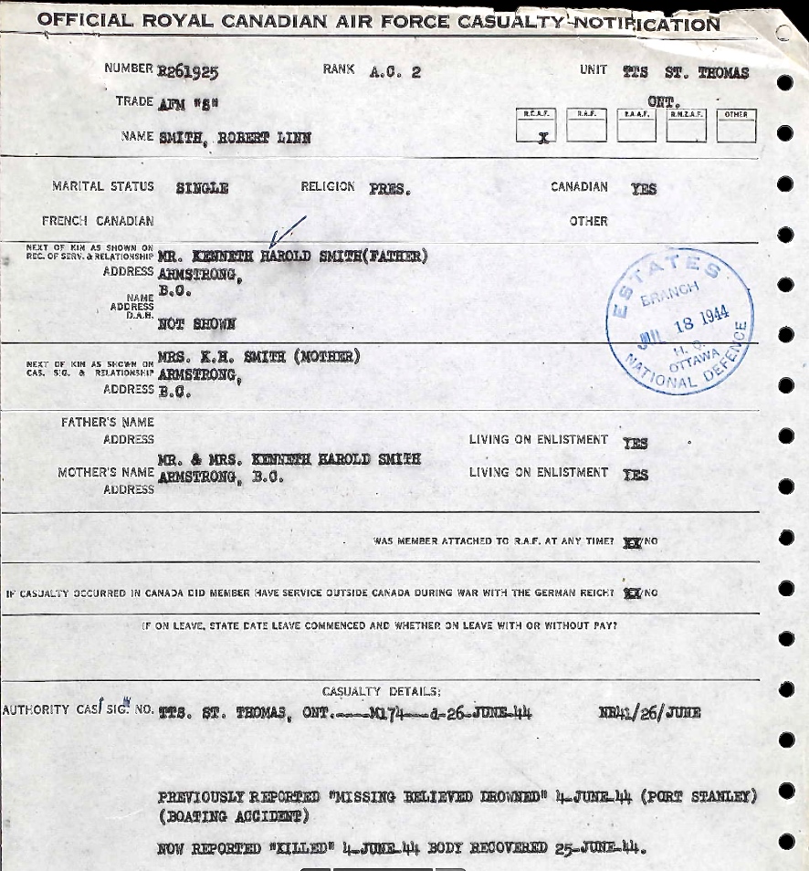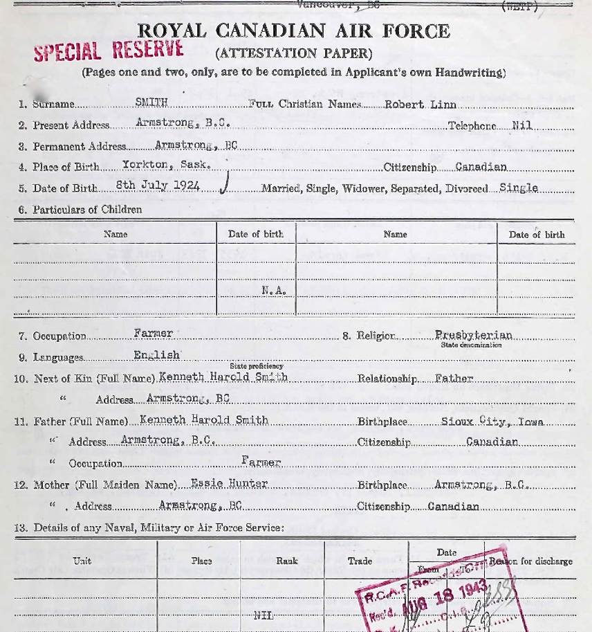 Son of Kenneth Harold and Essie Smith, of Armstrong, British Columbia.