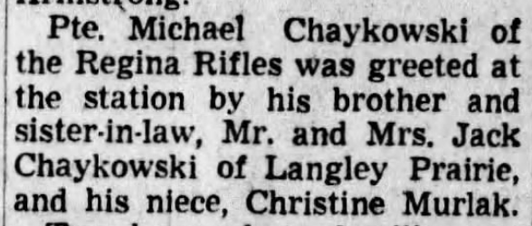 Son of Fred and Mary Chaykowski, of Paswegin, Saskatchewan husband of Hazel M. Chaykowski, of Vancouver.