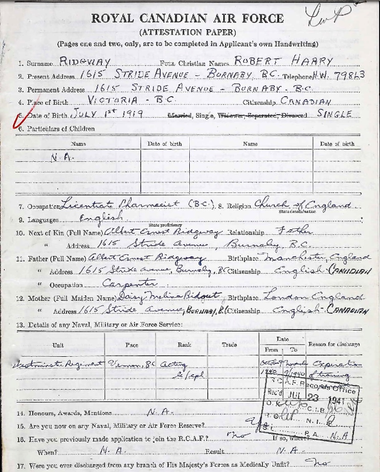 Digital gallery of Flight Lieutenant Robert Harry Ridgway