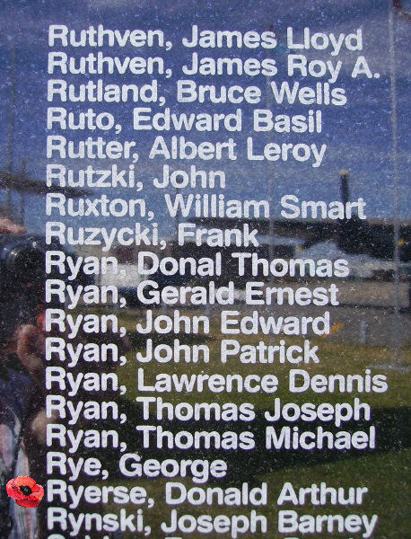 IN THIS CLOISTER ARE RECORDED THE NAMES OF TWENTY THOUSAND AIRMEN WHO HAVE NO KNOWN GRAVE. THEY DIED FOR FREEDOM IN RAID AND SORTIE OVER THE BRITISH ISLES AND THE LANDS AND SEAS OF NORTHERN AND WESTERN EUROPE