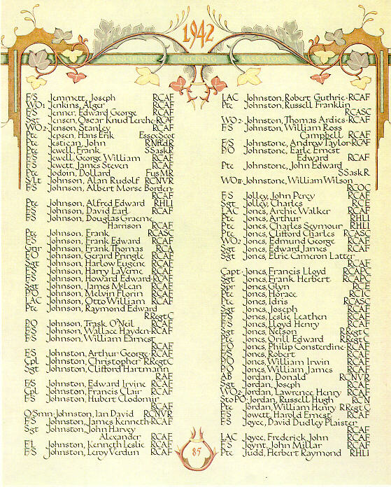 Page 85 of the Second World War Book of Remembrance.