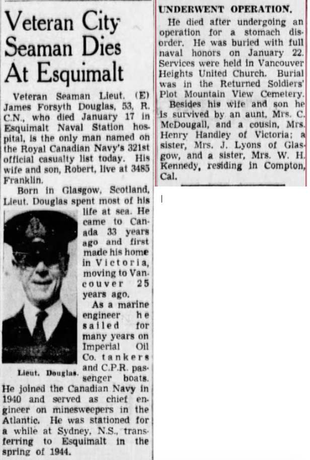 Husband of Ruby Rosamund Douglas, Vancouver, British Columbia