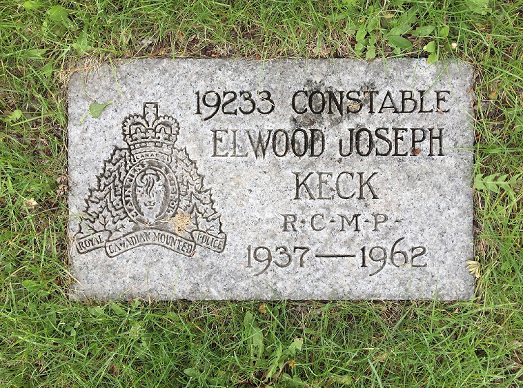 Cst. Keck was born in Saskatchewan. He was shot while investigating a complaint near Kamloops, British Columbia. Cst. Keck’s name appears on a plaque on the wall of the RCMP Chapel at Depot. He was married to Ann who was pregnant at the time of his death and they had a son. He is buried in Hillside Cemetery in Kamloops, BC.