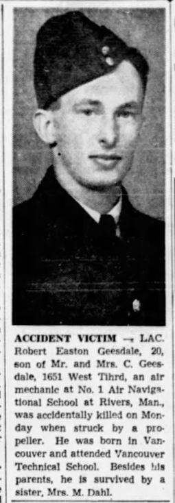 Son of Christopher S. Geesdale and Isabella B. Geesdale, of Vancouver.