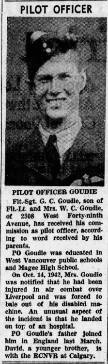 Son of William C. and Elenor A. Goudie, of Moose Jaw, Saskatchewan. Husband of Victoria B. Goudie of Vancouver.