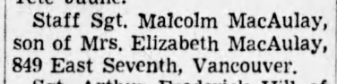 Son of Malcolm and Elizabeth MacAulay, of Vancouver; husband of Jean Ann MacAulay, of Vancouver.
