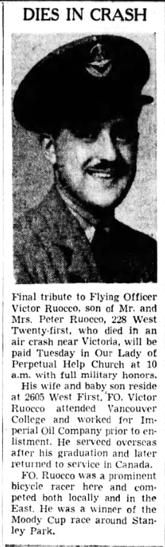 Son of Peter (Pietro) and Elizabeth (Lucia)(née Teti) Ruocco, of Vancouver; husband of Mary Elizabeth (née MacPherson) Ruocco, (remarried widow Young) and father of Edward Victor of Vancouver. British Columbia. Brother of Silvio.