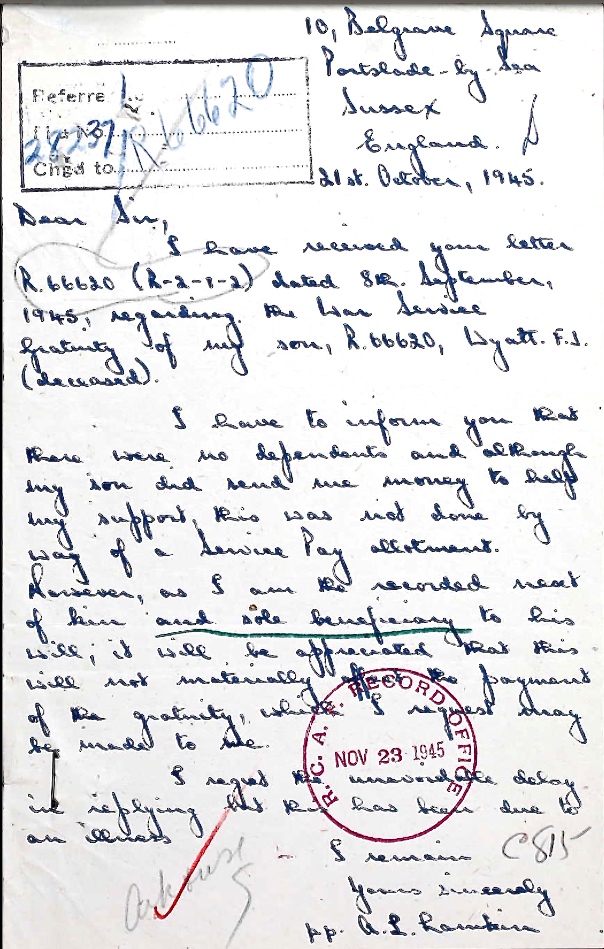 Son of James and Anne (née Jestico) Wyatt,(remarried Lambkin) of Portslade, Sussex, England.